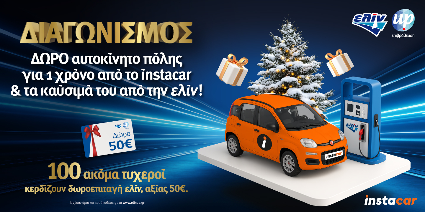 🎁Φέτος τα Χριστούγεννα η ελίν βάζει τα Χριστούγεννα σε κίνηση! Σε συνεργασία με το instacar ένας μεγάλος τυχερός κερδίζει για έναν ολόκληρο χρόνο όχημα πόλης και τα καύσιμά του από την ελίν!